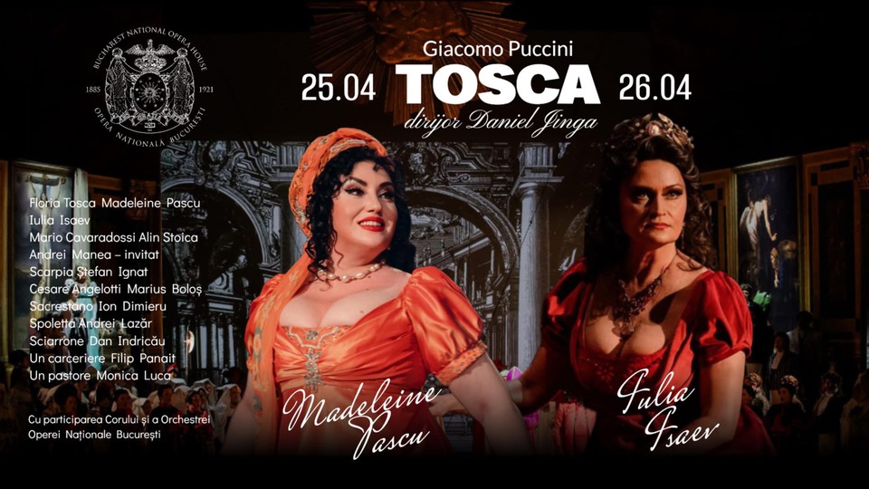 "Tosca" de Giacomo Puccini este titlul propus astăzi, 25 aprilie 2026, de Opera Națională din București.