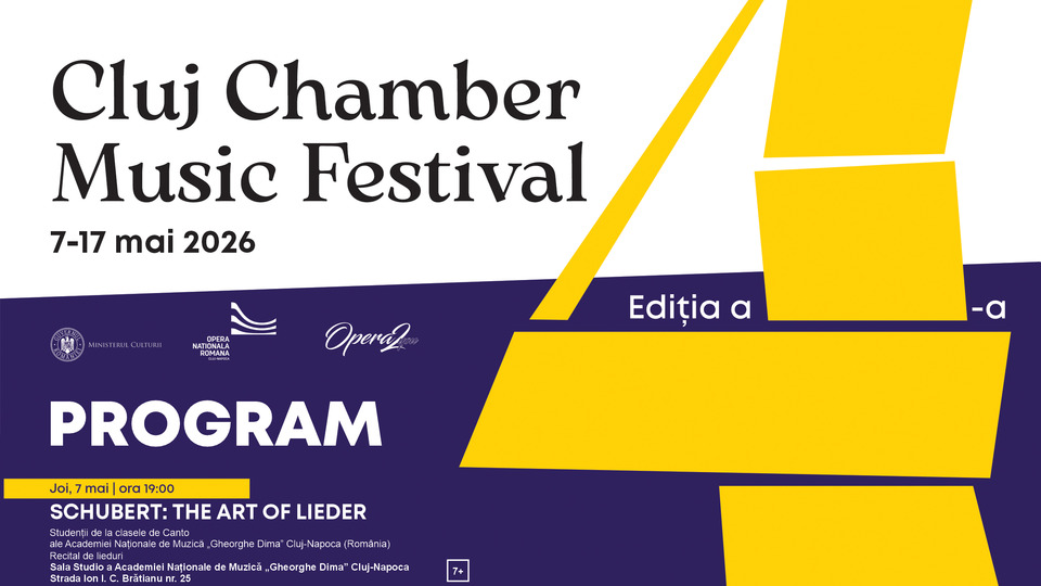 Opera Națională Română din Cluj-Napoca anunță cea de-a IV-a ediție a Cluj Chamber Music Festival, un eveniment dedicat muzicii de cameră, care va avea loc în perioada 7-17 mai 2026, în multiple locații din Cluj-Napoca și din împrejurimi.