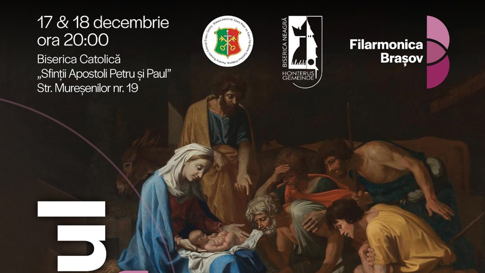 În datele de 17 și 18 decembrie de la orele 20.00, Filarmonica Brașov și Biserica Evanghelică C.A. din România - Parohia Brașov invită publicul la două concerte tematice de Crăciun susținute de Orchestra Filarmonicii Brașov, Corul "Bach" al Bisericii Negre, Corul "Vox Humana" din Sfântul Gheorghe, și soliștii Renáta Gebe-Fügi, Adriana Feșteu, Nicolae Simonov, Mark Kincses, sub bagheta dirijorului Steffen Schlandt.