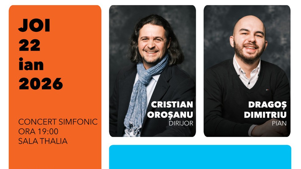 Astăzi, 22 ianuarie 2026, pianistul Dragoș Dimitriu este solistul Orchestrei Filarmonicii din Sibiu, dirijorul serii fiind Cristian Oroșanu.