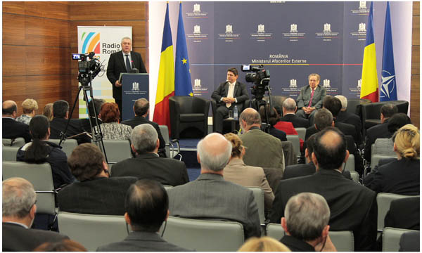 Participanții la conferință – foști miniștri de externe, ambasadori și alți membri ai corpului diplomatic acreditați la București, jurnaliști acreditați la Ministerul Afacerilor Externe și de la posturile Radio România, au avut prilejul să asculte puncte de vedere documentate asupra subiectului, dar și întâmplări deosebite din activitatea de corespondent de politică externă al Radio România, perioadă în care legătura cu diplomații români a fost, de-a lungul anilor, una benefică pentru ambele părți. Au avut scurte alocuțiuni: