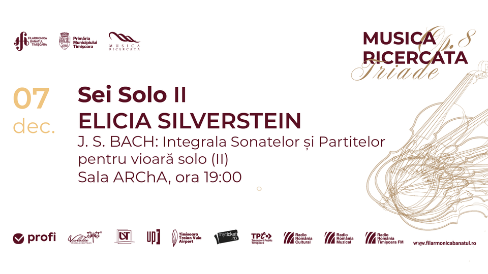 Filarmonica "Banatul" din Timișoara găzduiește astăzi, 7 decembrie 2025, un recital al violonistei Elicia Silverstein.