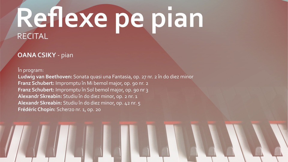 Filarmonica din Oradea prezintă astăzi, 9 decembrie 2025, recitalul "Reflexe pe pian", propus de Oana Csiky.