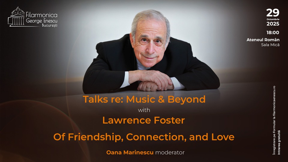 Tema conversației cu Lawrence Foster de pe 29 octombrie va fi Of Friendship, Connection, and Love (Despre prietenie, conexiune și iubire), o reflecție care rezonează profund cu personalitatea dirijorului, cu arta sa și cu legătura specială pe care o împărtășește atât cu muzicienii, cât și cu publicul. Evenimentul face parte din seria Talks re: Music & Beyond, lansată în această stagiune de Filarmonica George Enescu, pentru a crea momente de luciditate și inspirație, în care experiența împărtășită de artiști se extinde mult dincolo de muzică.