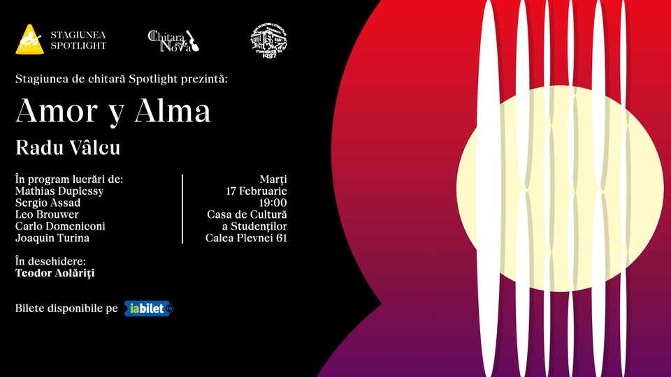 Stagiunea de chitară „Spotlight” continuă cu recitalul „Amor y Alma”