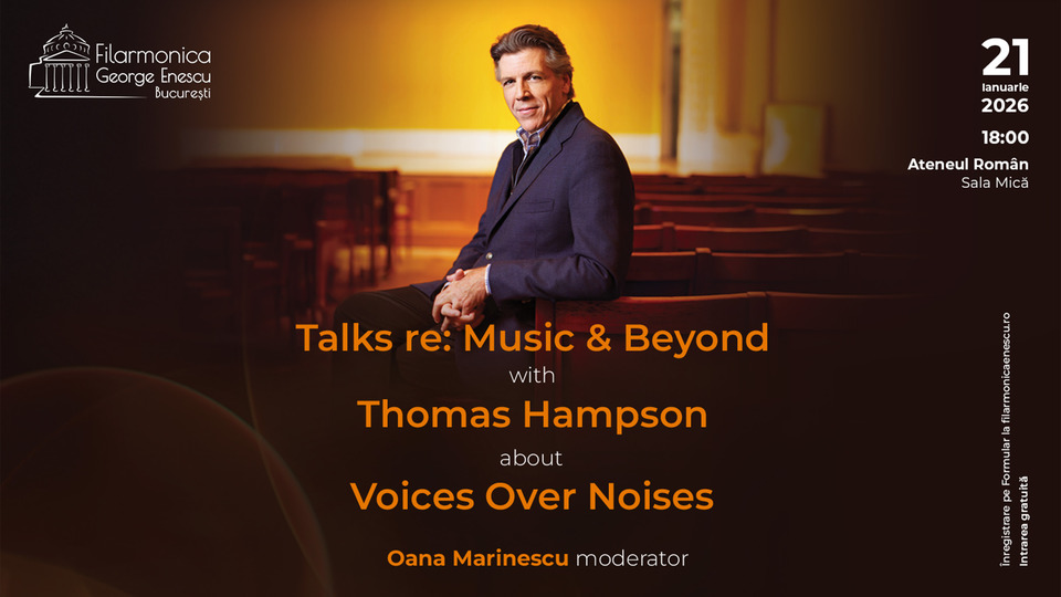 Filarmonica George Enescu îl va avea ca invitat pe Thomas Hampson, legendarul bariton cu multiple nominalizări și premii Gramophone Awards și GRAMMY, pe 21 ianuarie, la ora 18.00, în următoarea ediție Talks re: Music & Beyond, găzduită în Sala Mică a Ateneului Român. Tema întâlnirii - Voices Over Noises - deschide o conversație despre voce, nu doar ca instrument artistic, ci ca limbaj al experienței umane, o formă de responsabilitate față de comunitate și față de adevăr.