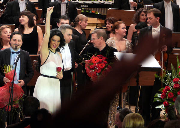 Soprana al cărei nume este vestit pe toate meridianele lumii a cântat sub bagheta unui artist român alături de care se află adesea pe scene internaționale, unul dintre cei mai mari muzicieni români la ora actuală: Tiberiu Soare, dirijor principal al Orchestrelor și Corurilor Radio România. Au contribuit de asemenea semnificativ la succesul evenimentului și dirijorii Voicu Popescu - Corul Madrigal și Daniel Jinga - Corul Accoustic. Seara a fost prezentată de Alice Barb, care de altfel a semnat și regia spectacolului din această seară.