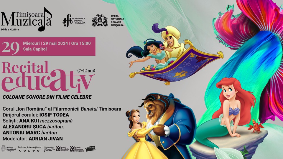 Micii melomani sunt așteptați astăzi, 29 mai 2024, de la ora 15.00, la Sala Capitol a Filarmonicii "Banatul" din Timișoara pentru a urmări un recital educativ cu muzică din filme celebre.