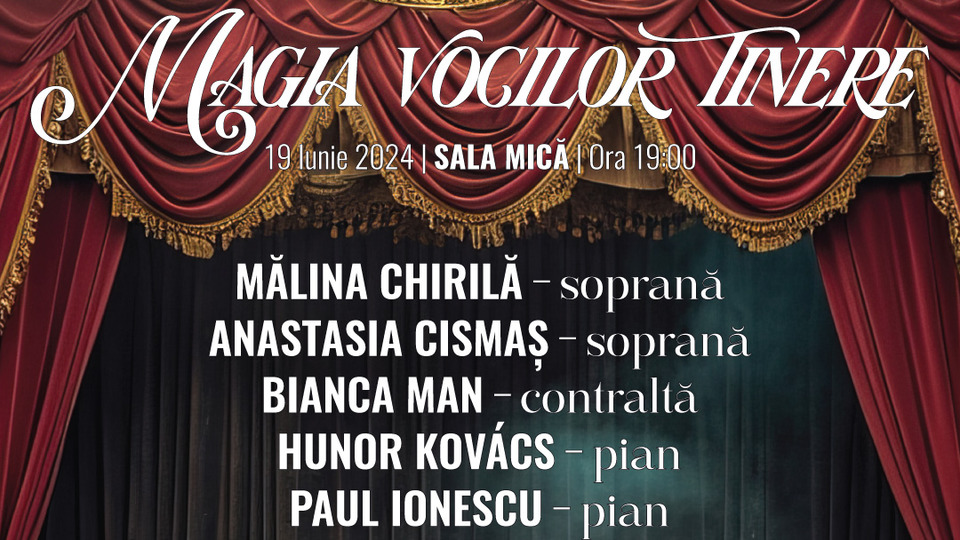 Magia vocilor tinere este titlul recitalului găzduit miercuri, 19 iunie 2024, de Sala muzicii de cameră a Filarmonicii din Brașov.