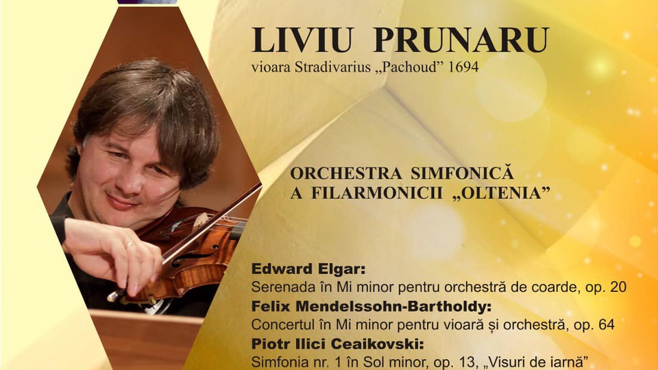 Violonistul Liviu Prunaru și dirijorul Emir Nuhanoviæ vor susține astăzi, 18 octombrie 2024, de la ora 19.00, un concert alături de Orchestra Filarmonicii "Oltenia" din Craiova.