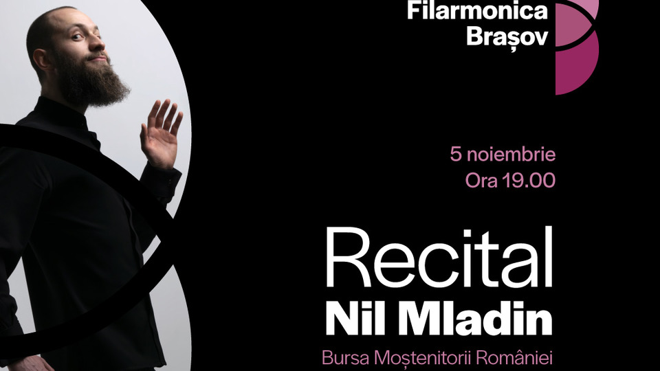 Pianistul Nil Mladin, câștigător al Bursei "Moștenitorii României muzicale" 2023, susține astăzi, 5 noiembrie 2024, un recital la Sala Mică a Filarmonicii din Brașov.
