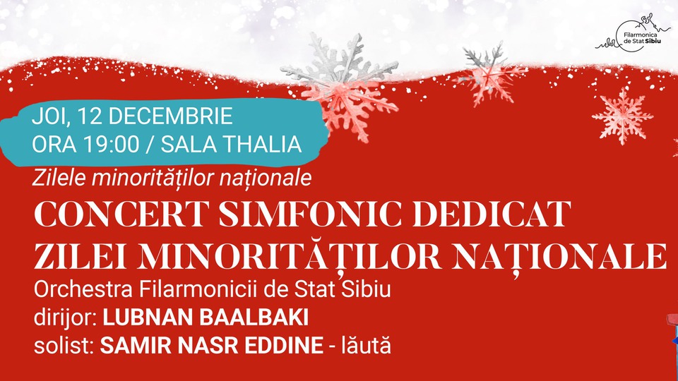 În cadrul seriei de evenimente dedicate Zilei Minorităților Naționale din România la Sibiu, are loc astăzi, 12 decembrie 2024, începând cu ora 19.00, un concert al Orchestrei Filarmonicii de Stat din oraș.