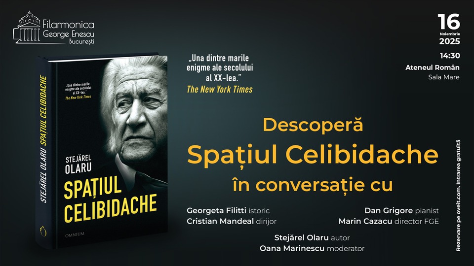Astăzi, 16 noiembrie 2025, la Ateneul Român vor avea loc trei evenimente culturale. De la ora 14:30, în Sala Mare, va avea loc lansarea volumului "Spațiul Celibidache" semnat de istoricul și autorul de non-fincțiune Stejărel Olaru, publicat la Editura OMNIUM. Evenimentul, moderat de Oana Marinescu, va include o conversație cu istoricul Georgeta Filitti, dirijorul Cristian Mandeal, pianistul Dan Grigore și Marin Cazacu, directorul Filarmonicii "George Enescu". De la ora 19:00, tot în Sala Mare va avea loc recitalul susținut de violonistul Valentin Șerban și pianistul Mihai Diaconescu. Programul cuprinde lucrări de Tomaso Antonio Vitali, Ludwig van Beethoven, Antonín Dvoűák, Serghei Prokofiev și Henryk Wieniawski. De la ora 19:00, în Sala Mică, va avea loc un concert cameral dedicat dinastiei belgiene, aflat sub înaltul patronaj al Excelenței Sale Domnului John Cornet d'Elzius, Ambasadorul Regatului Belgiei la București. Vor urca pe scenă Liliana Nedelciu (pian), Angela-Ioana Gheorghiu (mezzosoprană), Marta Băceanu Tudor (pian), Ștefan Gheorghiu (violă), Ion Nedelciu (clarinet), Emanuel Pusztai (pian) și Șerban Nichifor (violoncel). Concertul va fi însoțit de un comentariu realizat de Serena Adler.