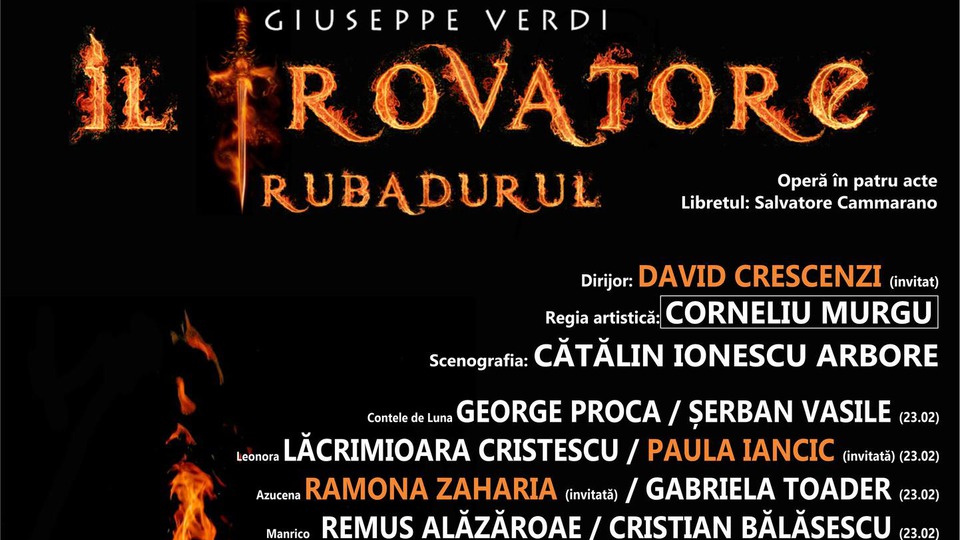 "Trubadurul" de Giuseppe Verdi este spectacolul propus astăzi, 23 februarie 2026, de Opera din Timișoara.