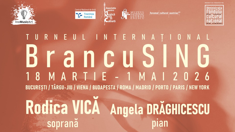 Miercuri, 18 martie 2026, ora 19:00, la Centrul Național de Artă "Tinerimea Română" din București (Strada Gutenberg Johann nr. 19, Sector 5), Asociația InoMusicArt, cu sprijinul AFCN - Administrația Fondului Cultural Național și în parteneriat cu Centrul Național de Artă "Tinerimea Română", Asociația pentru Muzică, Artă și Cultură, Muzeul Național "George Enescu" și Forumul Cultural Austriac, organizează concertul de deschidere a Turneului internațional BrancuSING, turneu ce marchează împlinirea a 150 de ani de la nașterea lui Constantin Brâncuși printr-un demers artistic care transpune în limbaj sonor ideile și formele sculpturale ale marelui artist, dar și o întâlnire între muzică, patrimoniu, istoria artei și creația contemporană.