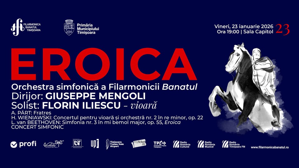 Violonistul Florin Iliescu este solistul Orchestrei Filarmonicii "Banatul" din Timișoara în concertul programat astăzi, 23 ianuarie 2026, la Sala Capitol a instituției. Muzicianul va interpreta Concertul nr. 2 în re minor pentru vioară și orchestră de Henryk Wieniawski.