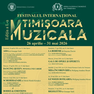 Festivalul Internațional "Timișoara Muzicală", ediția a L-a, 26 aprilie 2026 - 31 mai 2026Publicat: miercuri, 25 Martie 2026