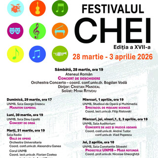 Festivalului "Chei" al Universității Naționale de Muzică din București începe sâmbătă, 28 martie, la Ateneul RomânPublicat: joi, 26 Martie 2026