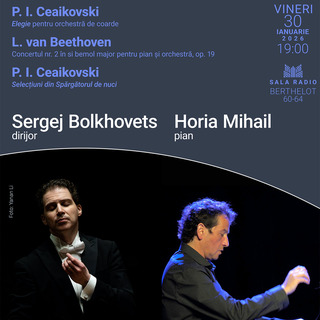 Concertul Orchestrei Naționale Radio. Dirijor: Sergej Bolkhovets. Solist: Horia Mihail - pian. Piotr Ilici Ceaikovski - Elegie pentru orchestră de coarde, Ludwig van Beethoven - Concertul nr. 2 op. 19 în si bemol major pentru pian și orchestră, Piotr Ilici Ceaikovski - Selecțiuni din muzica baletului Spărgătorul de nuci.