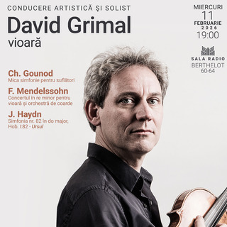 Concertul Orchestrei de Cameră Radio. Conducere artistică și solist: David Grimal. Charles Gounod - Mica simfonie pentru suflători; Felix Mendelssohn - Concertul în re minor pentru vioară și orchestră de coarde; Joseph Haydn - Simfonia nr. 82 în do major - Ursul.