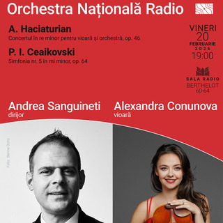 Concertul Orchestrei Naționale Radio. Dirijor: Andrea Sanguineti. Solistă: Alexandra Conunova - vioară. Aram Haciaturian - Concertul în re minor op. 46 pentru vioară și orchestră; Piotr Ilici Ceaikovski - Simfonia nr. 5 op. 64 în mi minor.