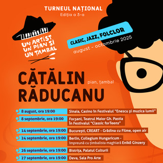 Cătălin Răducanu ajunge cu Turneul „Un artist, un pian, un țambal – clasic, jazz, folclor” la DevaPublicat: sâmbătă, 27 Septembrie 2025