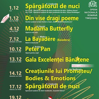 3 evenimente organizate astăzi de Opera Națională Română din TimișoaraPublicat: luni, 1 Decembrie 2025