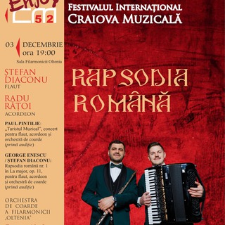 Flautistul Ștefan Diaconu și acordeonistul Radu Rățoi - invitați pe scena Filarmonicii din CraiovaPublicat: miercuri, 3 Decembrie 2025