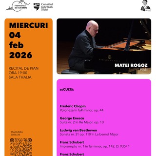 Recital de pian la Filarmonica din SibiuPublicat: miercuri, 4 Februarie 2026