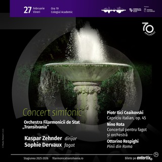 Program Ceaikovski-Rota-Respighi prezentat de Orchestra Filarmonicii „Transilvania”Publicat: vineri, 27 Februarie 2026