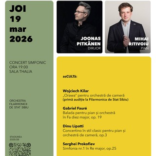 Pianistul Mihai Ritivoiu, solist pe scena Filarmonicii din SibiuPublicat: joi, 19 Martie 2026