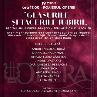 „Glasurile și tăcerile iubirii” - recital vocal în Foaierul Operei din BrașovPublicat: joi, 19 Martie 2026