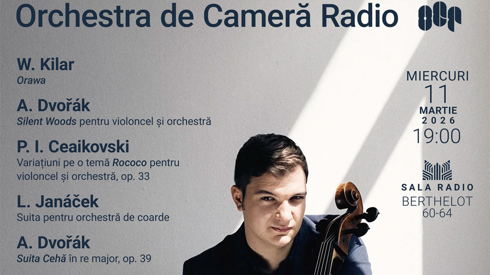 Concertul Orchestrei de Cameră Radio. Dirijor Jiűí RoŸeò. Solist Andrei Ioniță - violoncel. Wojciech Kilar - Orawa,