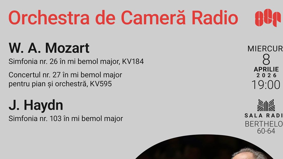 Concertul Orchestrei de Cameră Radio. Dirijor: Cristian Mandeal. Solistă: Elena Bashkirova - pian. Wolfgang Amadeus Mozart - Simfonia nr. 26 KV 184 în mi bemol major și Concertul nr. 27 KV 595 în mi bemol major pentru pian și orchestră; Joseph Haydn - Simfonia nr. 103 în mi bemol major.