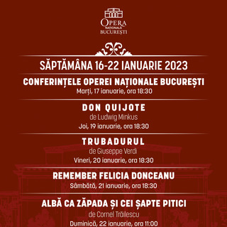 Agenda de concertOperă și balet, conferințele ONB și concert in memoriam Felicia Donceanu, pe scena operei bucureștene