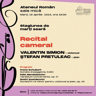 Agenda de concertRecital cameral. Violoncelistul Valentin Dimitrie Simion și pianistul Ștefan Pretuleac în Stagiunea de marți seara