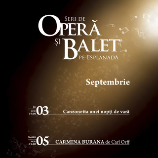 Opera Națională București prezintă pe 3 și 5 septembrie, începând cu orele 19:00, concerte în aer liber în cadrul "Seri de Operă și Balet pe Esplanadă" |