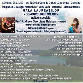 Agenda de concertStagiunea 'Prologul festivalului' 2020-2021 - Gala Laureaților participanți la concursurile online ale Festivalului de Arte 'FESTIVAL 4 ARTS'