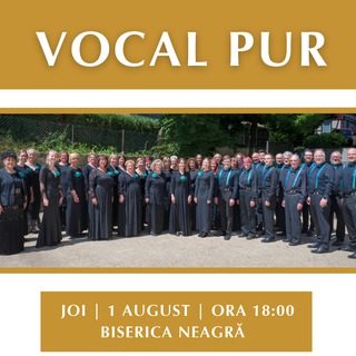 Biserica Neagră găzduiește în data de 1 august, de la ora 18.00, un concert de muzică corală susținut de Vocal Pur. |