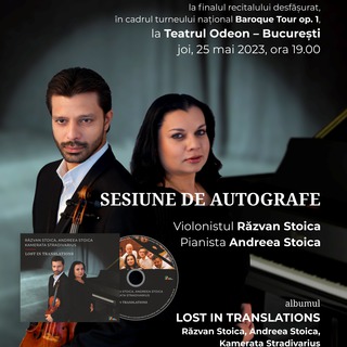 Joi, 25 mai, la Teatrul Odeon, la finalul Recitalului cameral susținut de violonistul Răzvan Stoica și pianista Andreea Stoica, Editura Casa Radio aduce în atenția publicului meloman albumul Lost in Translations |