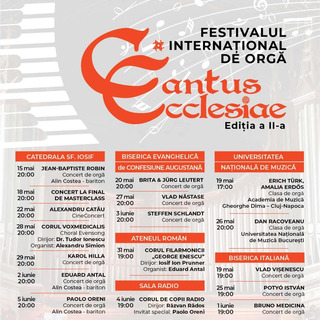 Agenda de concertUn festival cu și despre cele 6 orgi istorice din București. "Cantus Ecclesiae" - Ediția a II-a