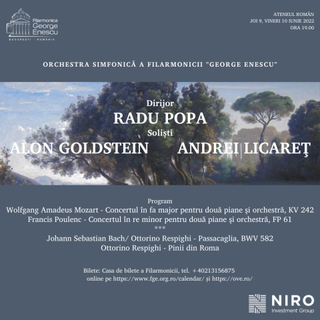 Joi, 9 și vineri, 10 iunie 2022 , Orchestra simfonică a Filarmonicii "George Enescu" va fi condusă de Radu Popa |