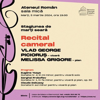 Marți, 5 martie, ora 19.00, Ateneul Român, Sala mică |