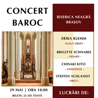 În perioada 29.05 - 02.06 comunitatea Bisericii Evanghelice C.A. din România - Parohia Brașov organizează o serie de concerte extraordinare în Biserica Neagră. |