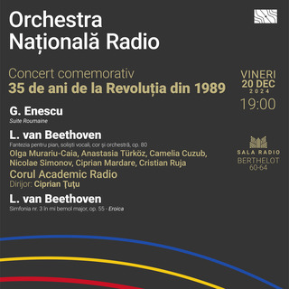 Vineri, 20 decembrie 2024 (de la 19.00), Orchestra Națională Radio prezintă un eveniment special ce marchează împlinirea a 35 de ani de la Revoluția din 1989 |