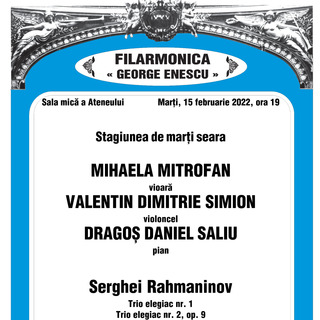 Ne bucurăm să putem anunța încă un recital de muzică de cameră, în care protagoniștii s-au alăturat într-o formație de trio pentru a oferi publicului un program dedicat în întregime muzicii lui Serghei Rahmaninov |