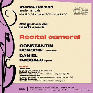 Marți, 6 februarie, ora 19.00, Ateneul Român, Sala mică |
