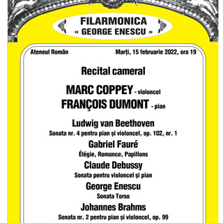 Agenda de concertRecital cameral - Marc Coppey, violoncel și François Dumont, pian