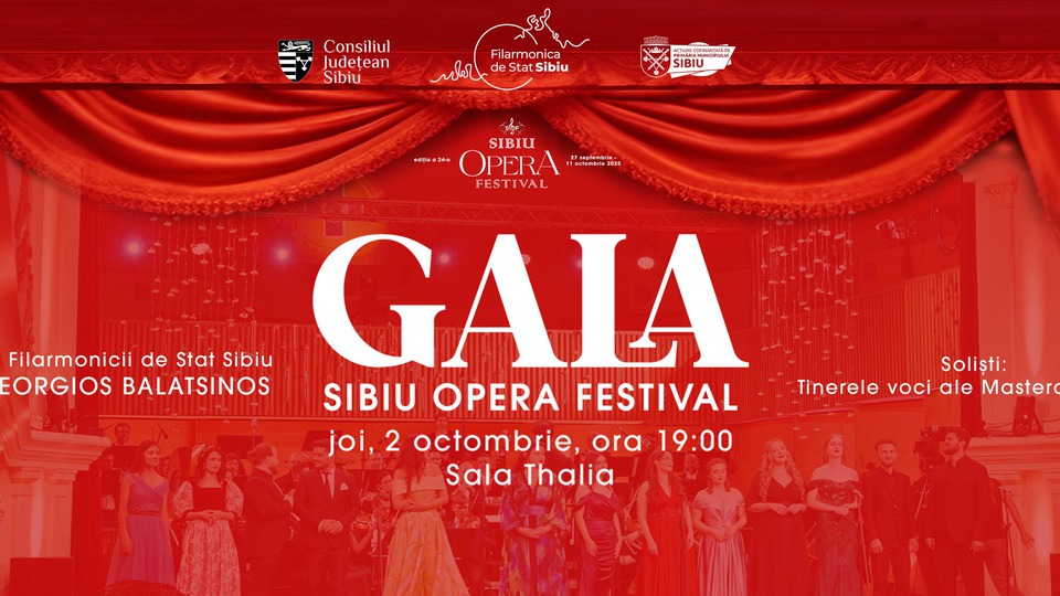 Nouă tineri artiști lirici din București, Chișinău, Brașov, Cluj-Napoca, Botoșani și Sibiu sunt soliștii Galei Sibiu Opera Festival 2025, care va avea loc astăzi, 2 octombrie, de la ora 19.00, la Sala Thalia.