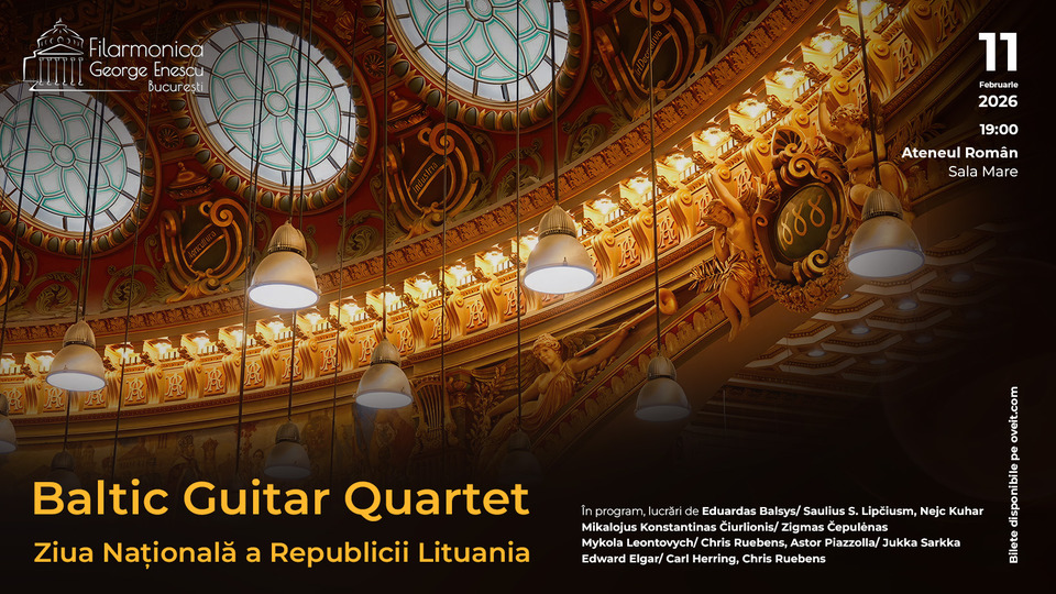 Ateneul Român găzduiește în această seară de 11 februarie 2026 un recital extraordinar dedicat Zilei Naționale a Republicii Lituania. Formația „Baltic Guitar Quartet” va prezenta publicului lucrări din creația compozitorilor Eduardas Balsys, Nejc Kuhar, Mikalojus Konstantinas Čiurlionis și Astor Piazzolla, între alții. Printre cei care au realizat aranjamentele lucrărilor pentru această formulă instrumentală se numără Saulius S. Lipèius , Zigmas Čepulėnas, Chris Ruebens.